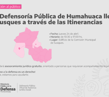 Atención en territorio: la Defensoría Pública llega a SusquesAburgos22 abril, 2025Atención en territorio: la Defensoría Pública llega a Susques Desde el Ministerio Público de la Defensa de la Provincia de ... Leer más