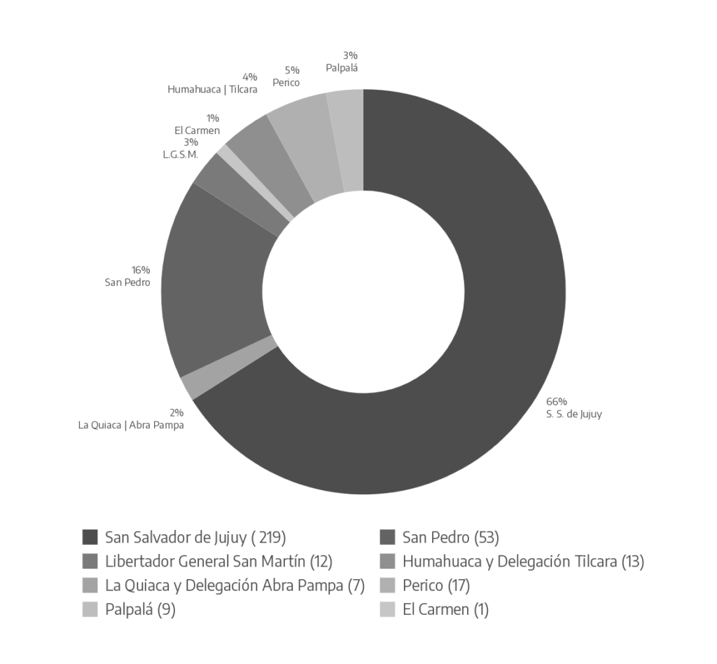 Si bien una parte significativa de la planta se encuentra radicada en San Salvador de Jujuy, sede central del organismo, se cuenta con presencia en localidades como San Pedro, Libertador General San Martín, Humahuaca, La Quiaca, Perico, Palpalá y El Carmen, entre otras.